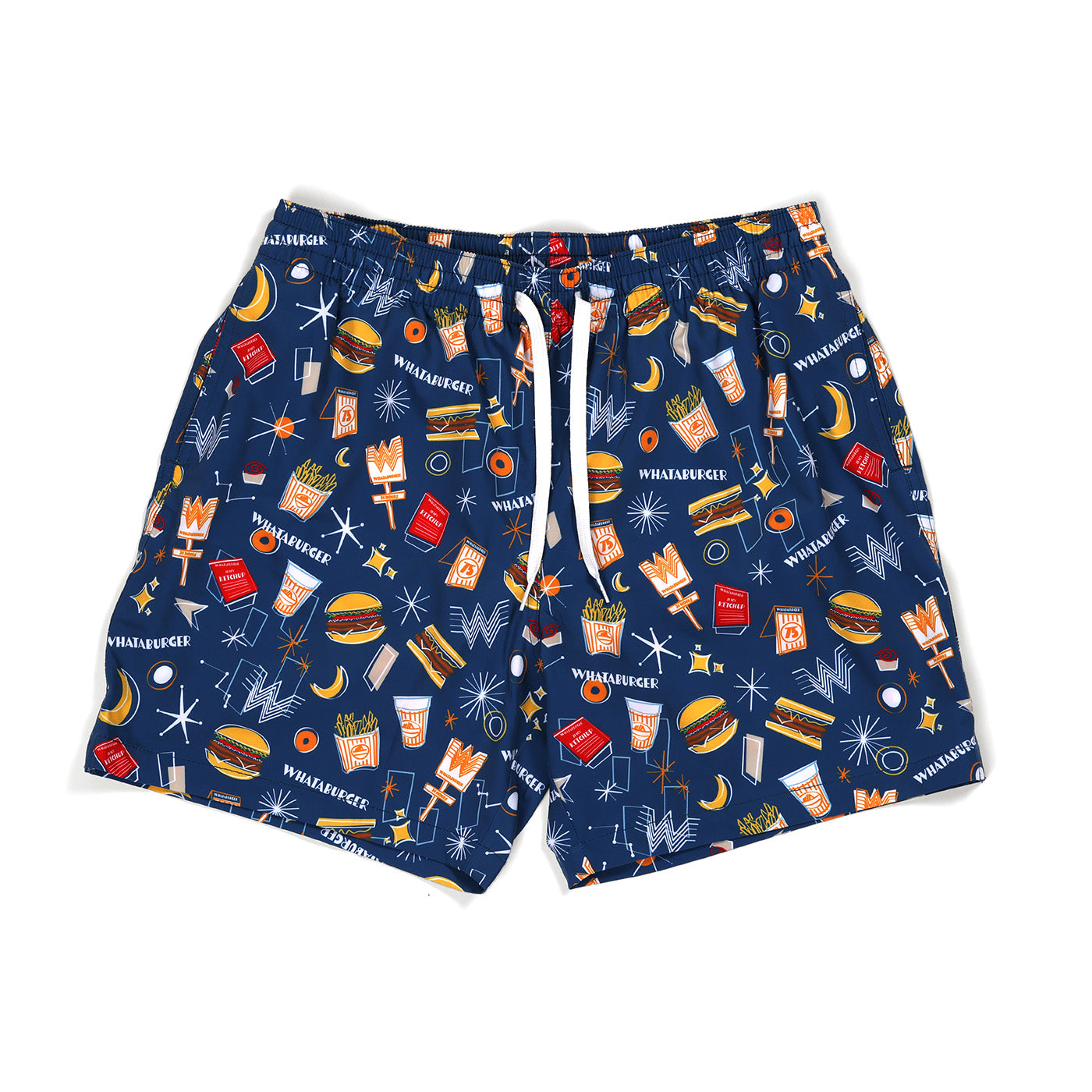Make a splash with Chubbies® 75 Years Swim Trunks! These playful blue swim trunks feature the iconic images of Whataburger and a vibrant orange and white striped liner. Perfect for beach days or pool parties, these trunks are sure to catch everyone’s eye.