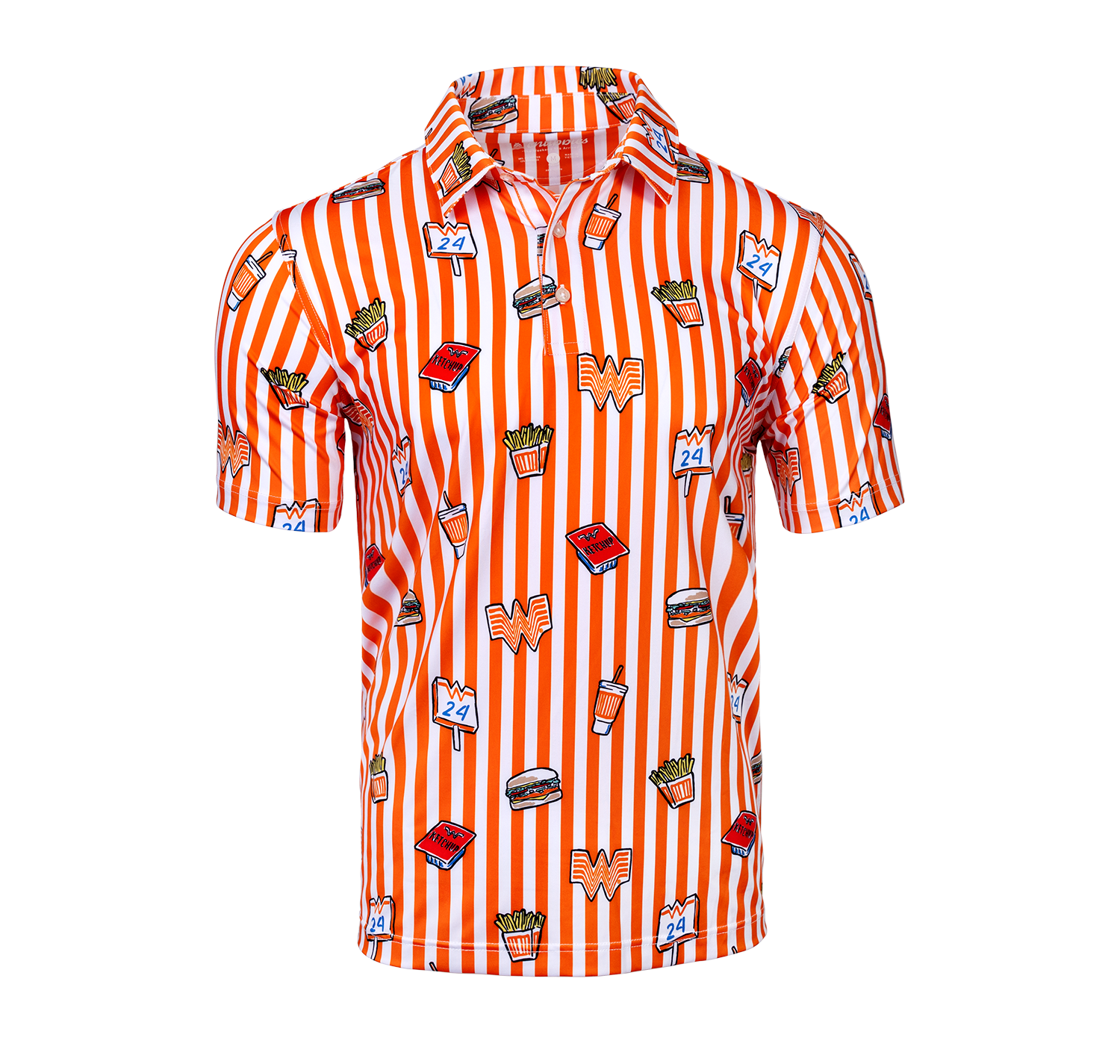 Get ready for some fun in the sun with the Chubbies® Striped Polo. A polo so extremely stretchy and breathable, you’ll wonder how you ever performed without it. Featuring fun comic book style icons and a classic orange and white striped polo design, this shirt will have you turning heads.