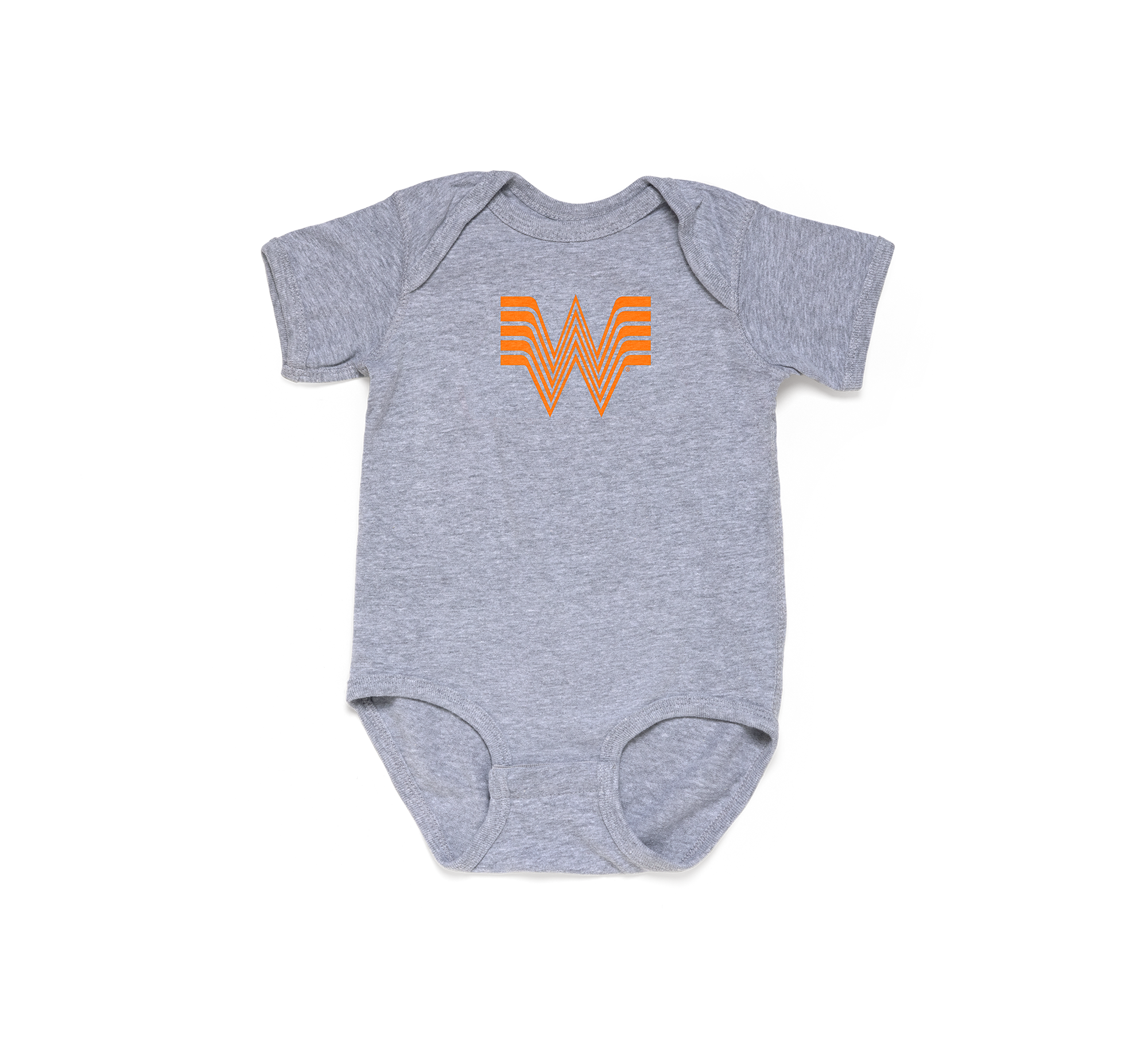 Dress up your little one in style with our Grey Flying W Baby Bodysuit! This trendy grey bodysuit features our iconic orange Flying W Whataburger logo, making it the perfect choice for any little trendsetter. Comfort and style come together in this quirky and playful piece.