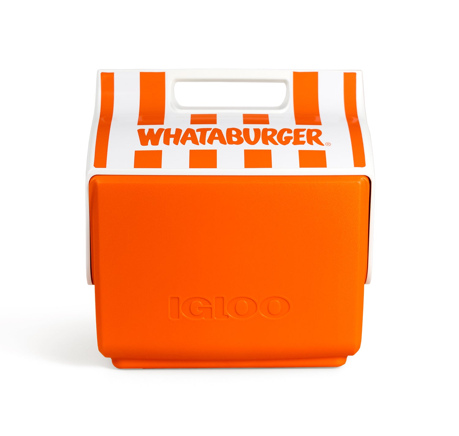 A line extension of a fan favorite, this is the smaller version of the Whataburger Igloo Cooler! Meet your new best friend. Thetalk of the tailgate, the keeper of cold drinks, your new picnic basket… We introduce to you the Whataburger Igloo LITTLE Playmate Cooler.
