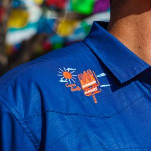 This navy long sleeve button-up shirt features unique designs on each shoulder: “Come Early” with a sunny Whataburger sign on one side, and “Stay Late” with a moonlit Whataburger sign on the other. It’s a playful way to celebrate your Whataburger love from dawn till dusk while staying comfortably stylish.