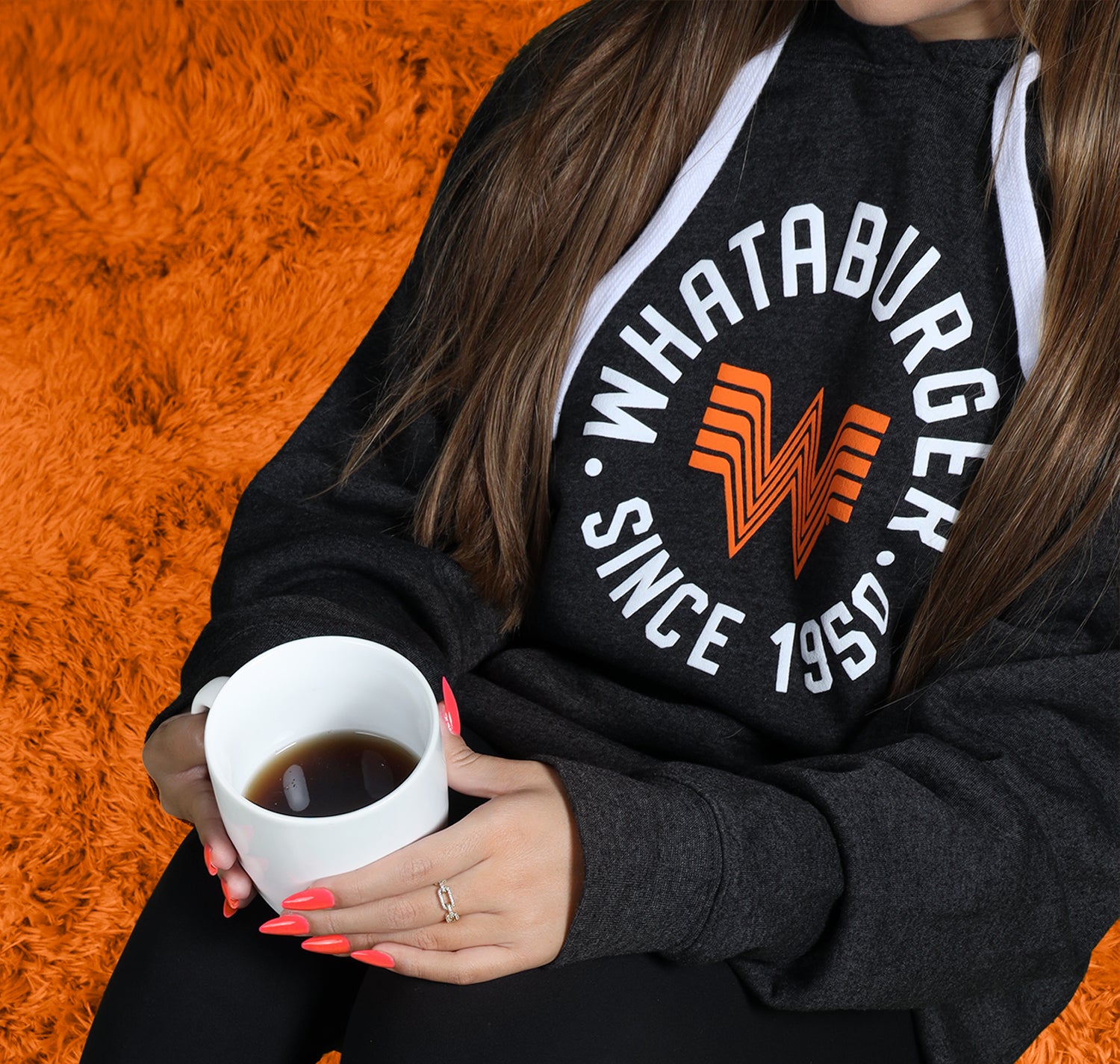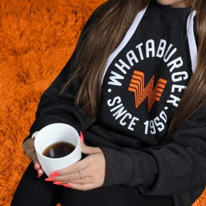 Your best bet at staying snug in the cold: a warm fire, something hot to sip on and this cozyWhataburger Hoodie. This roomy, tri-fleece blended sweatshirt features thick white drawstrings for an athletic look and a kangaroo pocket. This Whataburger Hoodie feels like a big hug, even if you’re solo atop a mountain or camping underneath the stars.