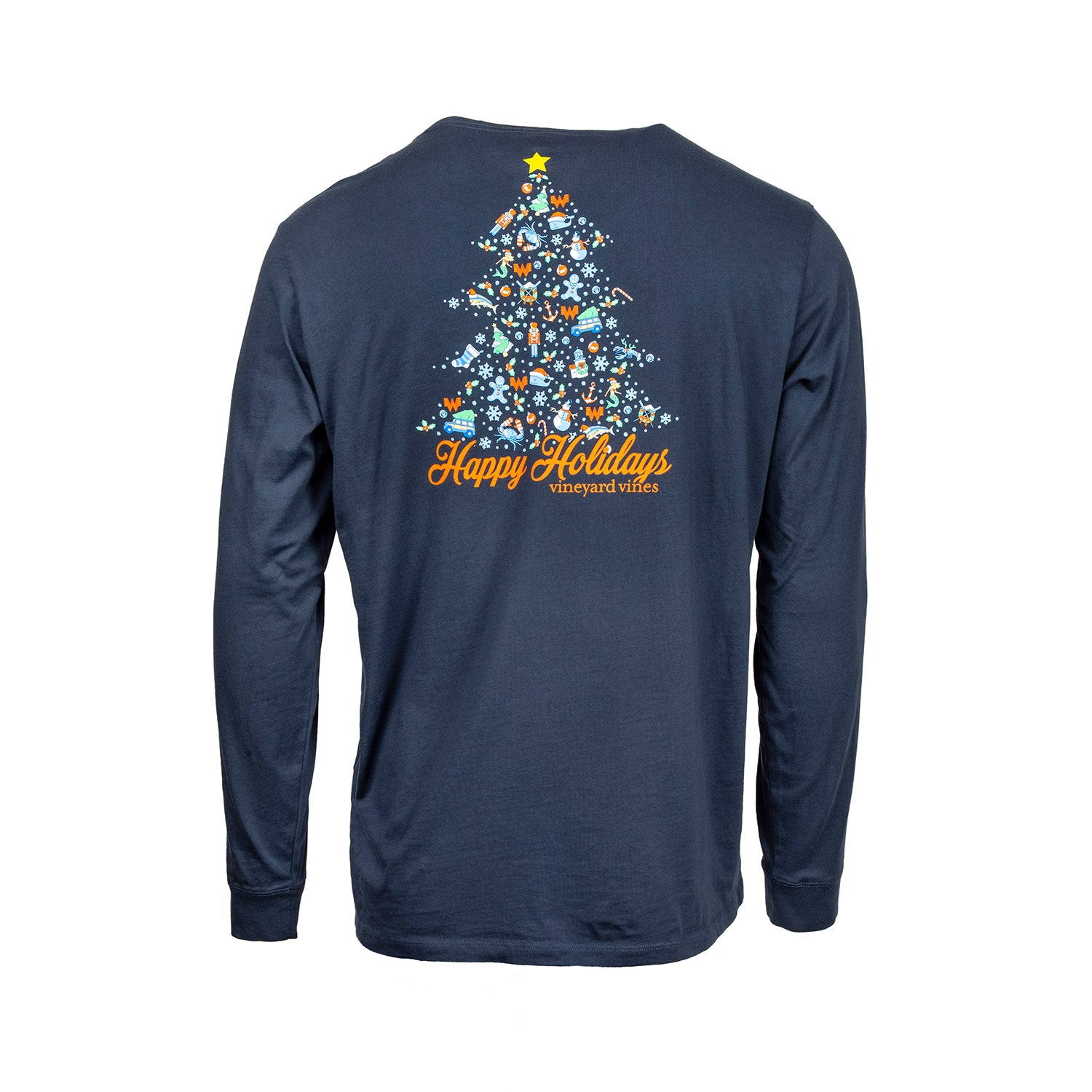 Get in the holiday spirit with this limited edition Vineyard Vines x Whataburger long sleeve tee! A festive Christmas tree design made of holiday icons adorns the back, while the front pocket proudly displays the iconic Whataburger logo. Spread cheer and style with this playful and quirky holiday tee. Happy holidays, y’all!