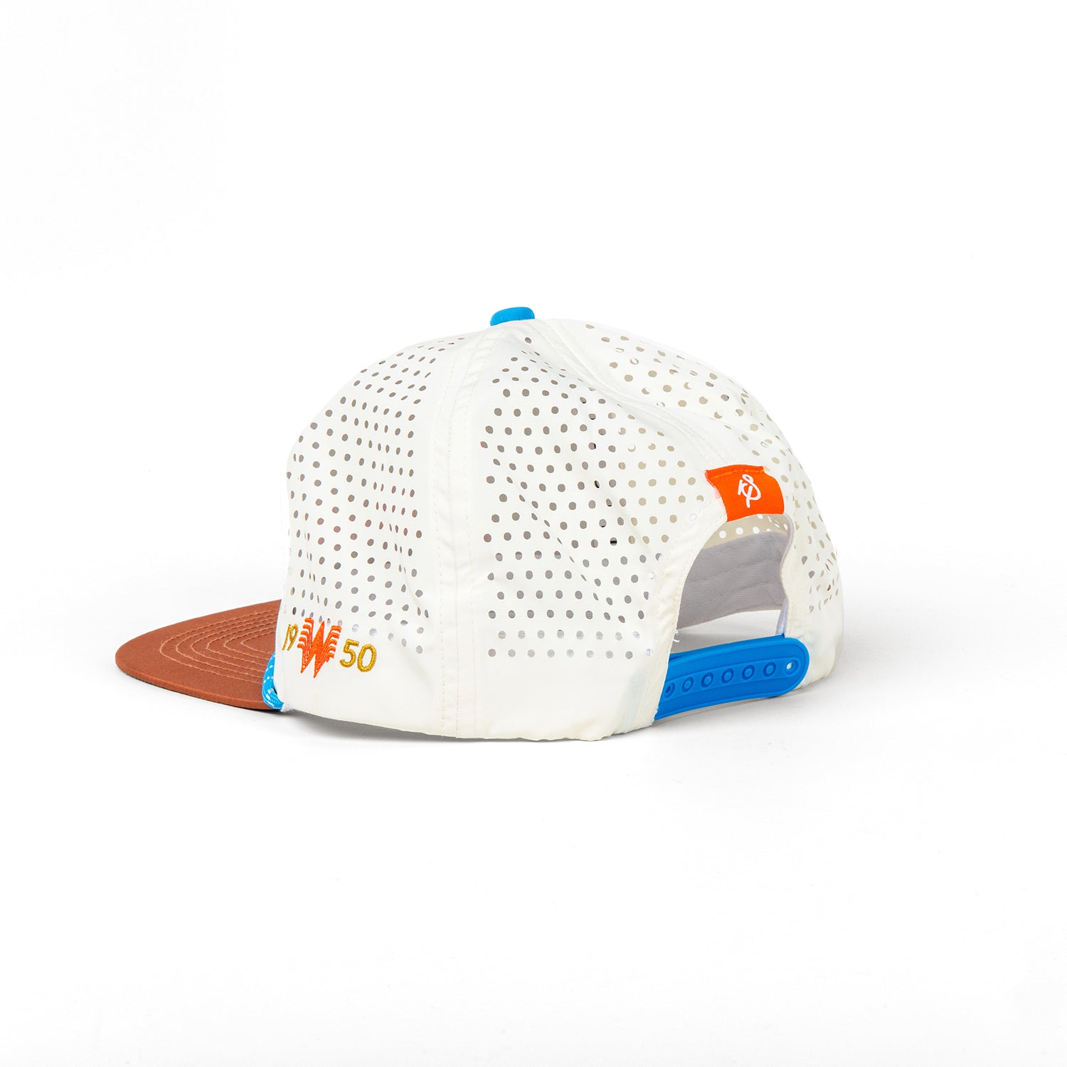 Say hello to the Whata Cream Puff Staunch Collection Hat! This cream-colored hat with brown bill and a playful blue and white striped rope detail is a must-have for those who want to add a touch of fun to their wardrobe. Make a statement with the bold “WHATA” puff embroidery and side embroidery detail.