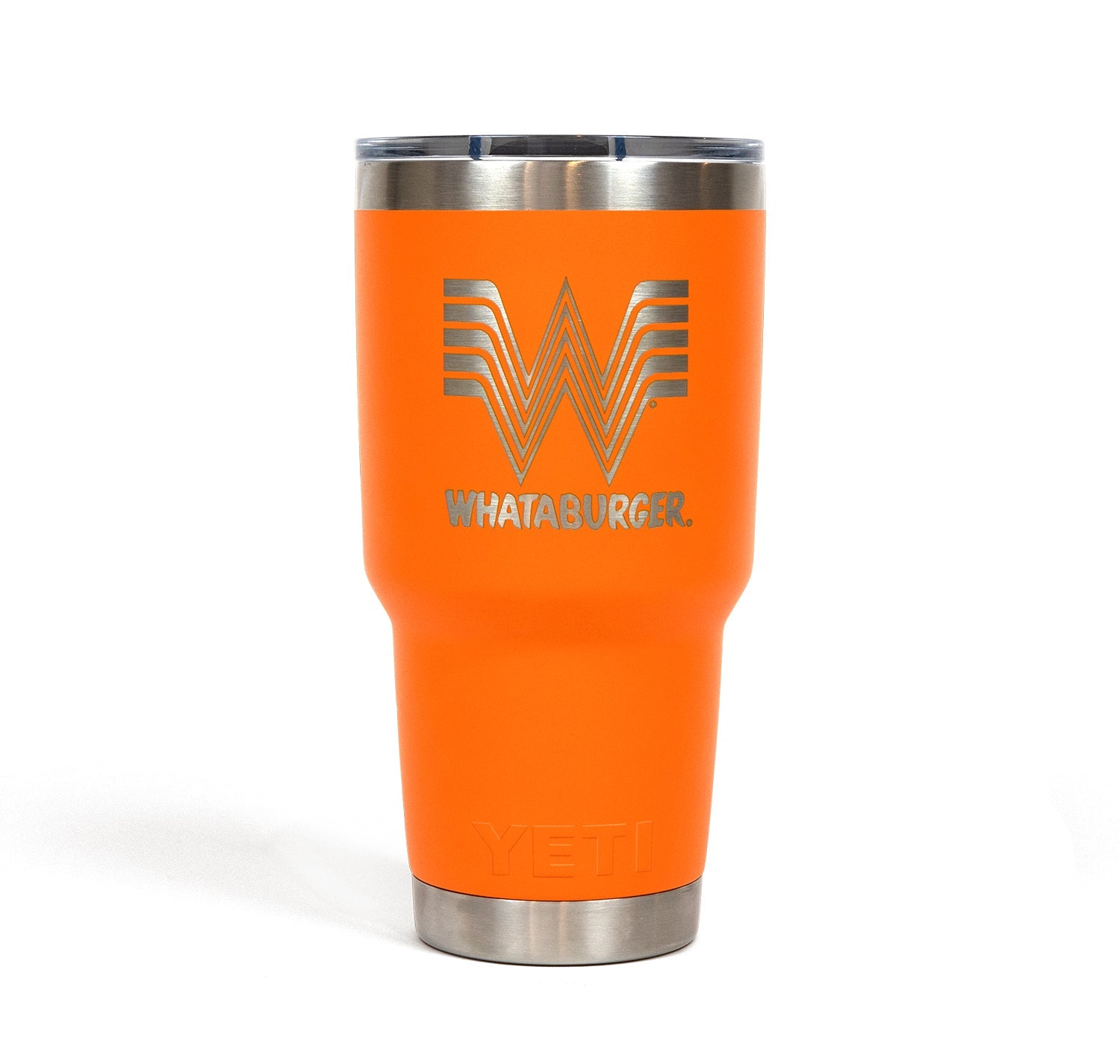 We took the fan-favorite 30oz Orange YETI Rambler Tumbler and made it even better by customizing it just for the WhataTeachers! Features double-sided engraving: WhataTeacher on one side, and the Whataburger logo on the other side.