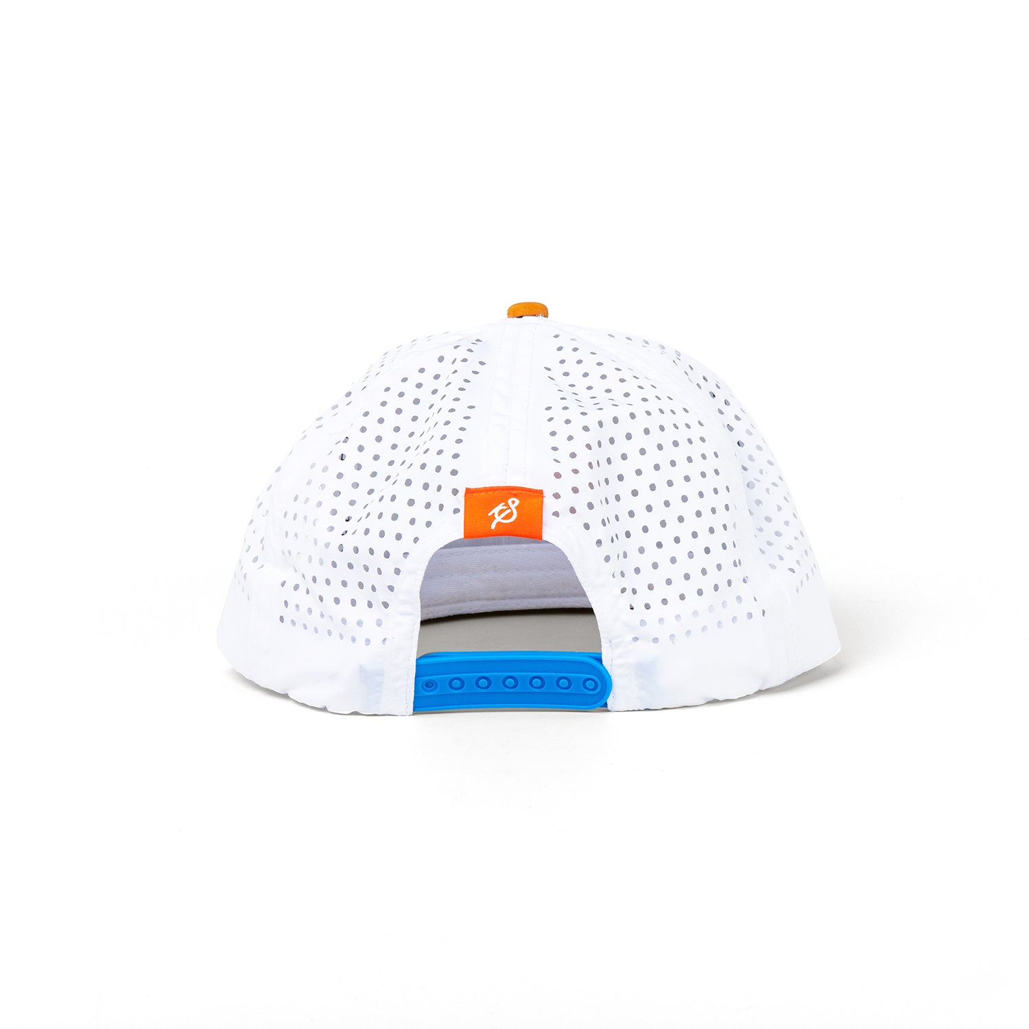 Add a touch of class with this white hat featuring a light blue and gold striped rope detail. You will stand out with the perforated hole backing and stylish front embroidery. Show off your style with the White 1950 Staunch Collection Hat.
