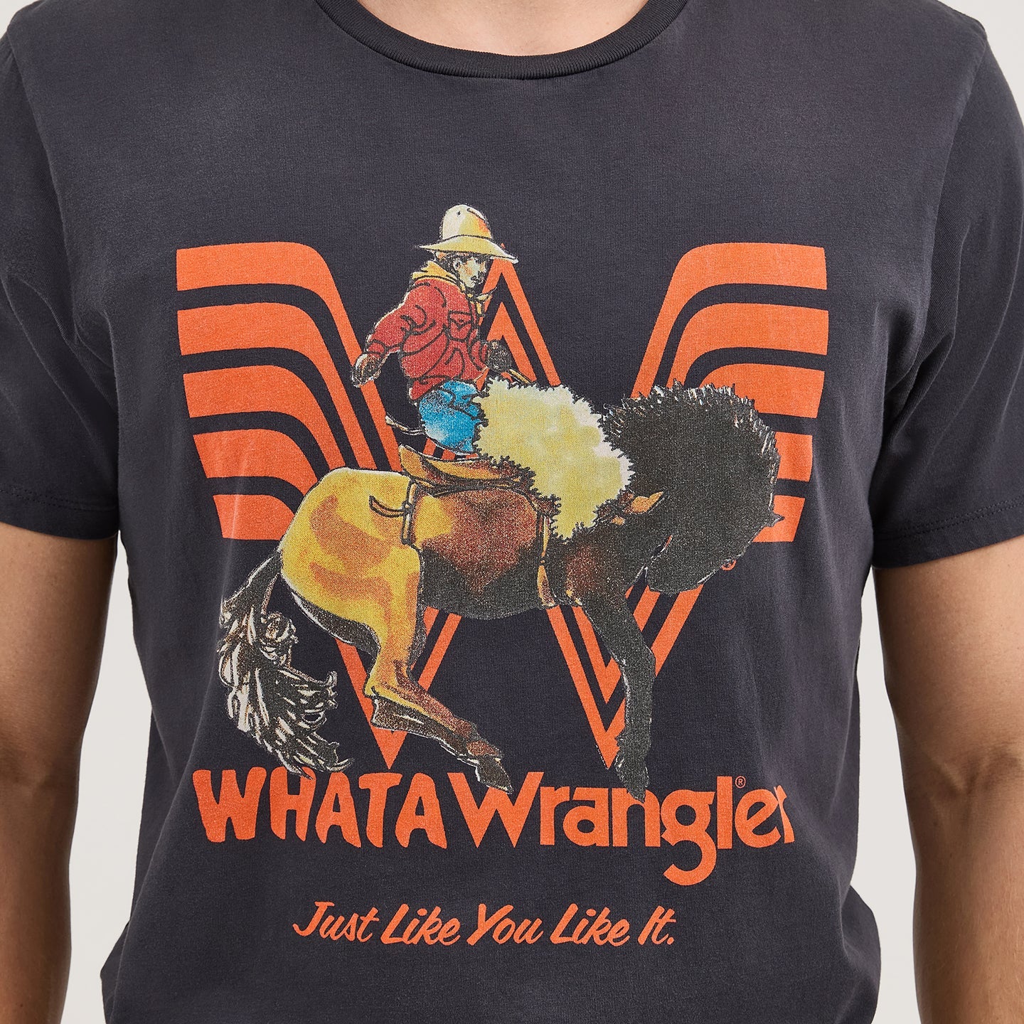 Meet the unofficial—but very official—style of rodeo season. The Wrangler® x Whataburger® Men’s Long Live Burgers T-Shirt tells it like it is with a bold graphic across the front of a bronc rider in his element, set against the iconic “flying W” of your favorite establishment. Plus, you’ll have Long Live Burgers printed across the back so everyone in the stands knows where you’re headed when the night winds down.