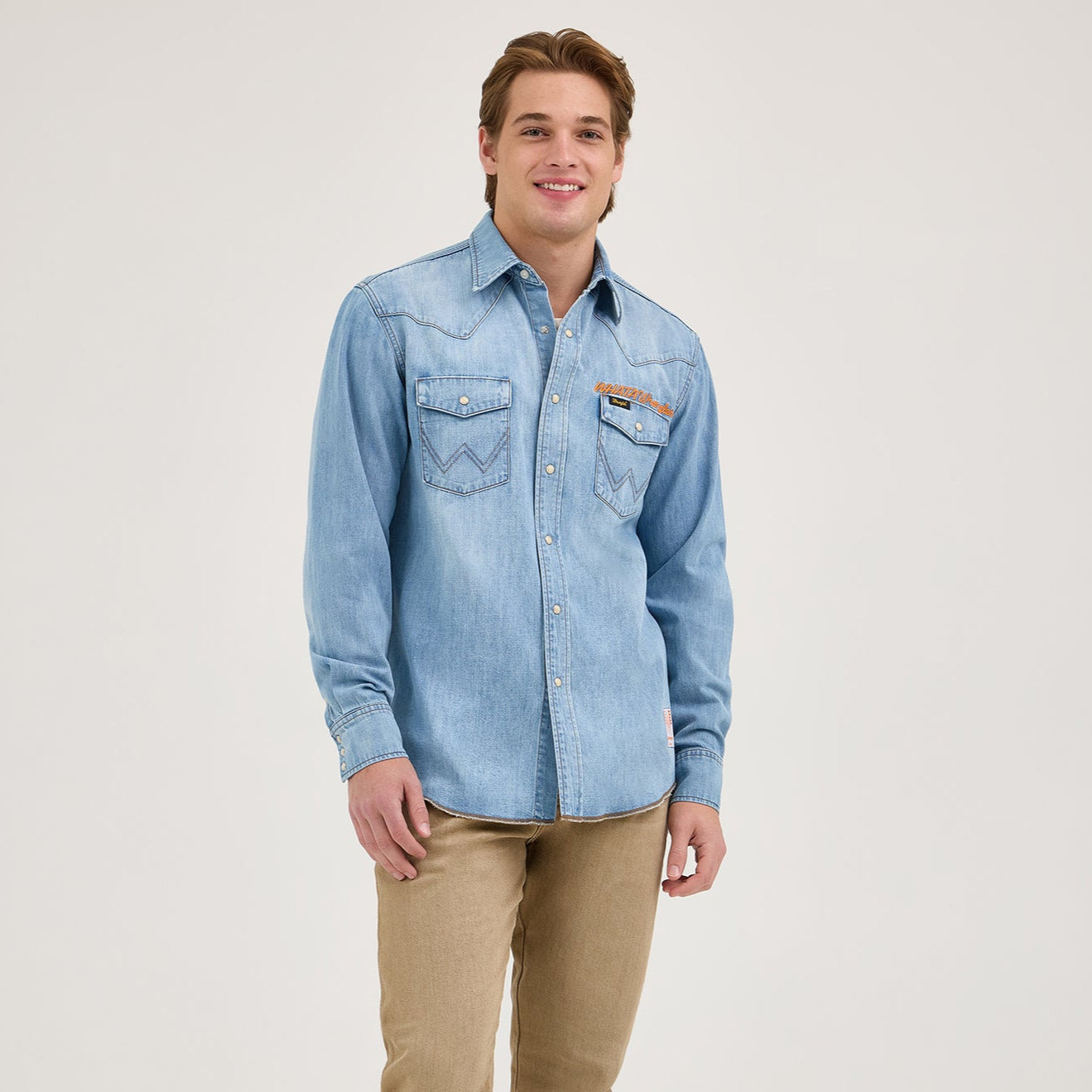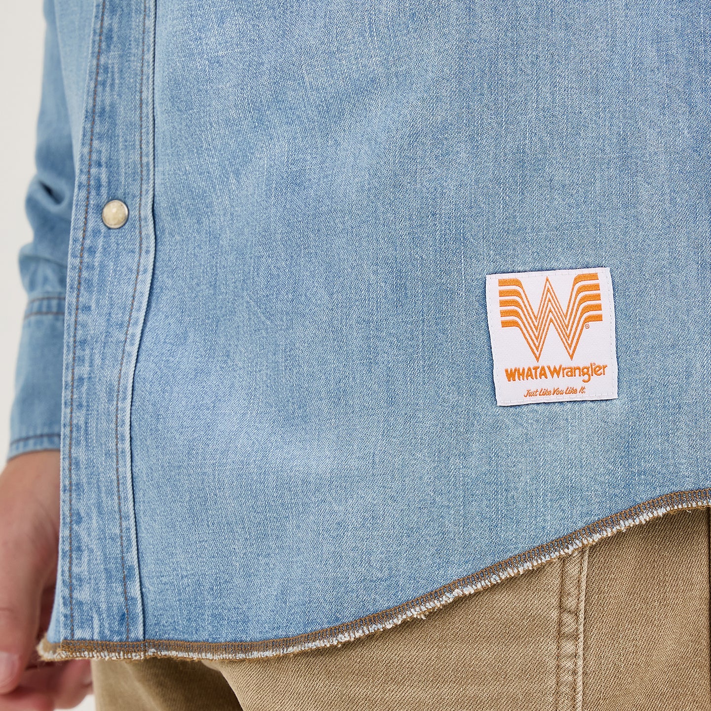 Long Live Cowboys…and Burgers! The Wrangler® x Whataburger® Western Shirt combines all the details of a classic with the limited-edition branding of your favorite Texas burger joint. It comes with an easy fit that’s not too tight or too loose, complete with a curved hem that looks great tucked or left untucked. This long-sleeve shirt is crafted from cotton in a sun-washed blue that looks well-worn right from the start. It comes with all the Western styling, just like you like it, an embroidered collaboration logo, and a woven label on the lower left side.